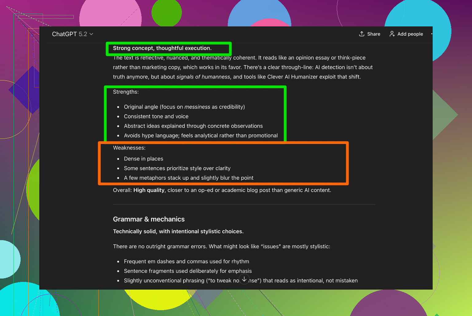 - Brugte ChatGPT 5.2 til at generere en 100% AI‑skrevet artikel om Clever AI Humanizer.