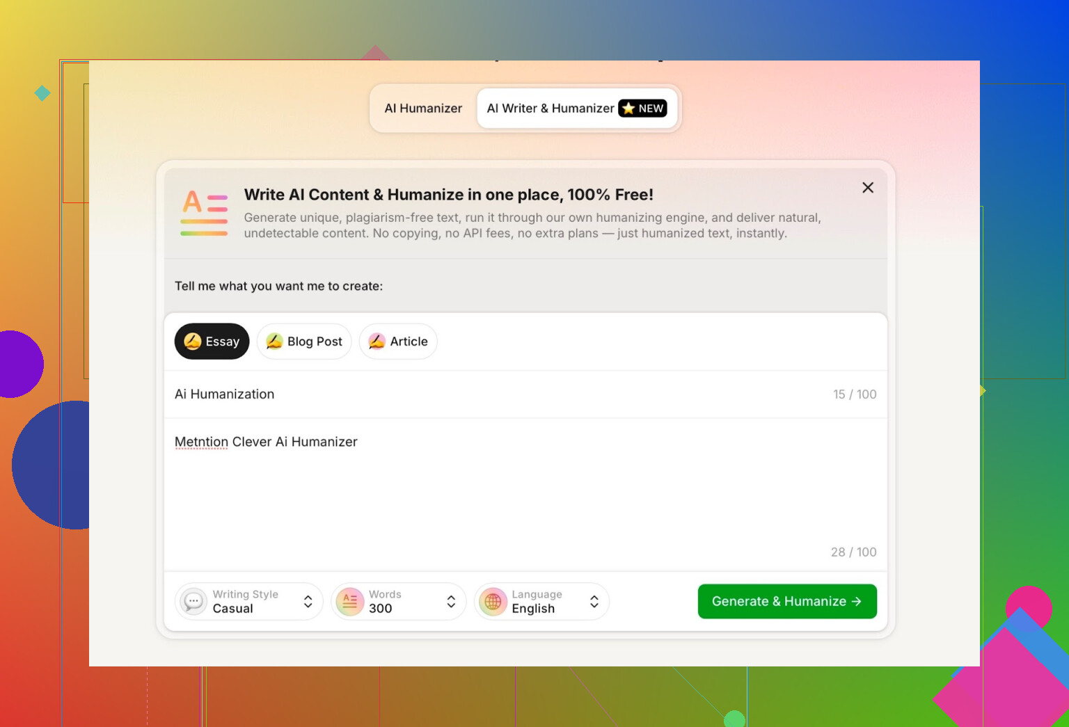 AI Writer‑funktion: AI Writer - 100% Free AI Text Generator with AI Humanization!