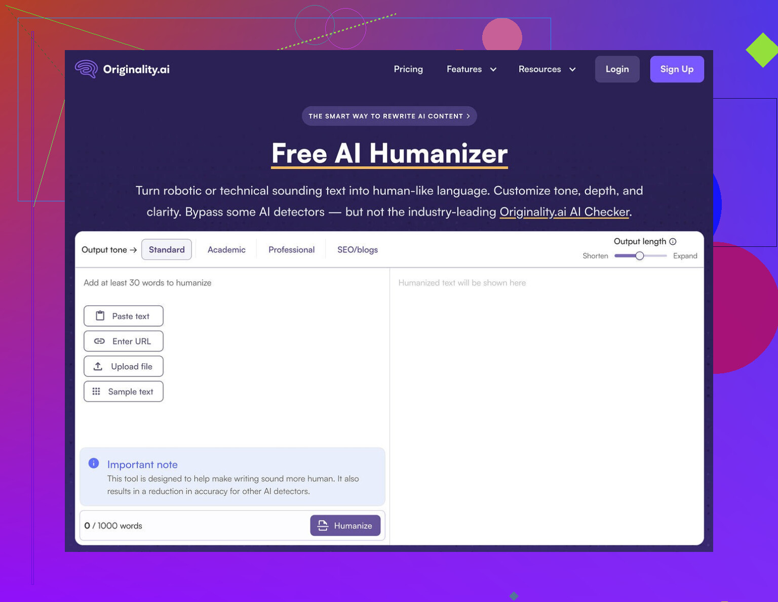 Originality is known for its AI detector. People throw it around like the “this thing will catch you” tool. So I was curious what their own “humanizer” could do. If a company builds the cop, you sort of expect them to understand how to dodge the cop too.